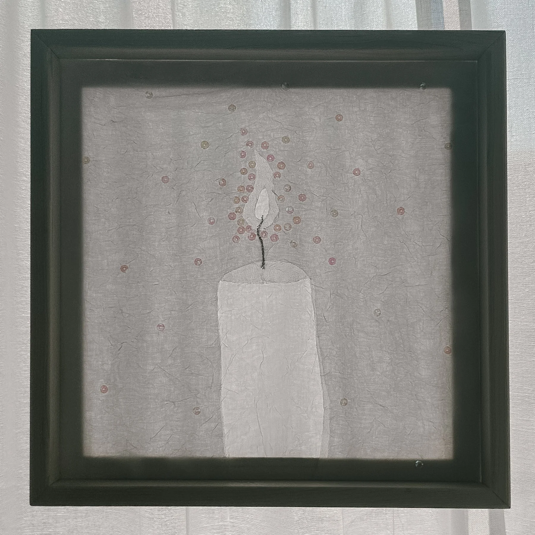This project is called “Light”, featuring nine pieces of art each representing a different Bible verse about light. Each piece is sown with a low opacity white fabric and small sequin. Special thanks to Mark Baldry (my grandpa) for building the wood frames. Working on this project has been such a gift in my life and I hope they bring you joy.